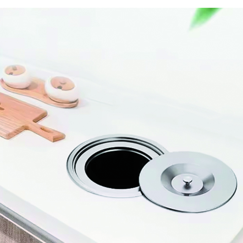 Pearlead Round Recessed Counter Top Cover Trash Bin Built-in Flap Garbage Can Kitchen Bench Stainless Steel Work Top Waste Bin
