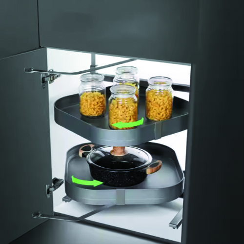Aluminum Grey Plating Pull-Out Rotating Basket Kitchen Universal Magic Corner Furniture Hardware