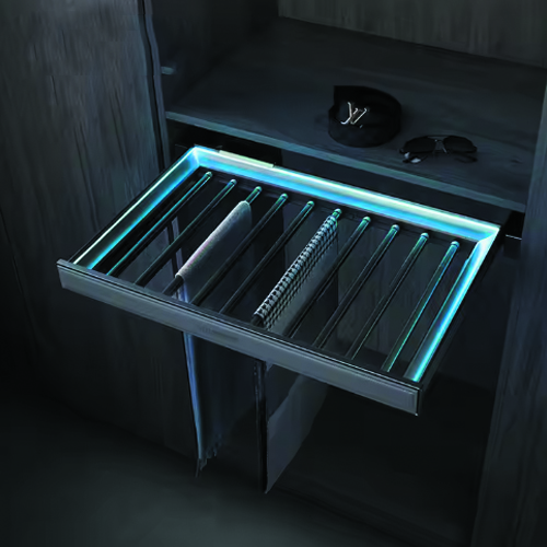 High End Leather Trouser Rack with LED Light Aluminum Wardrobe Accessories Trouser Hanger