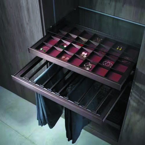 High-Class Glass Panel Wardrobe Soft Closing Pull Out Pants Trouser Holder Jewellery Drawer Furniture