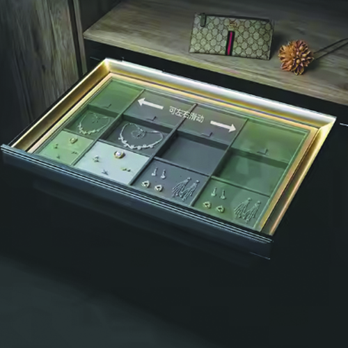 Pull Out Jewelry Organizer Trays Accessories Storage Box for Drawer Dresser Wardrobe, Gadgets Display Showcase with Led Light