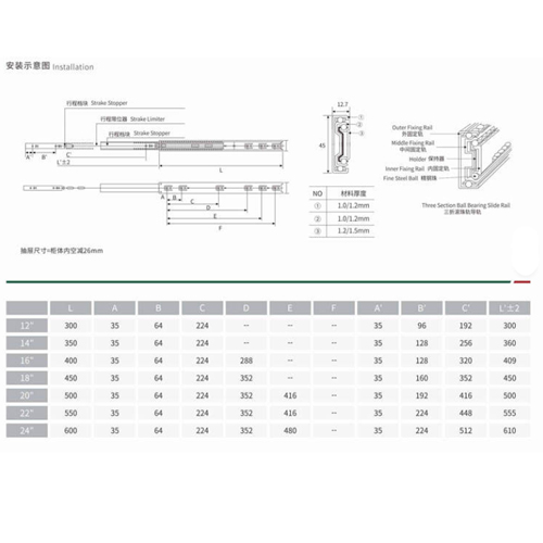 Be the first to review “45mm Width Furniture Full Extension Drawer Push Open Ball Bearing Slide”
