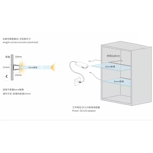 Customized 8mm DC12V Glass Edge Lighting Led Glass Display Shelf Cabinet Led Light