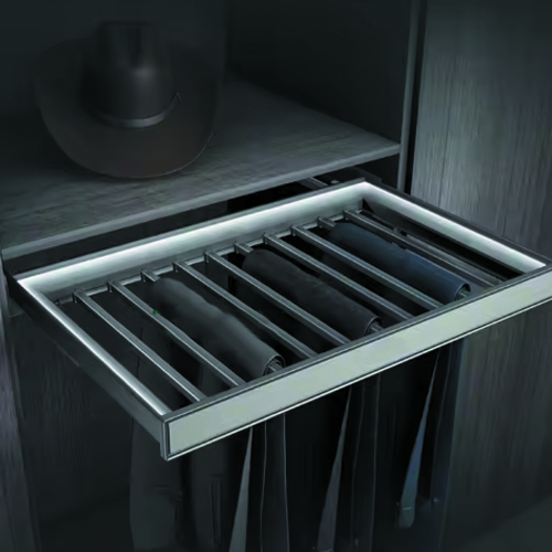High End Leather Trouser Rack with LED Light Aluminum Wardrobe Accessories Trouser Hanger