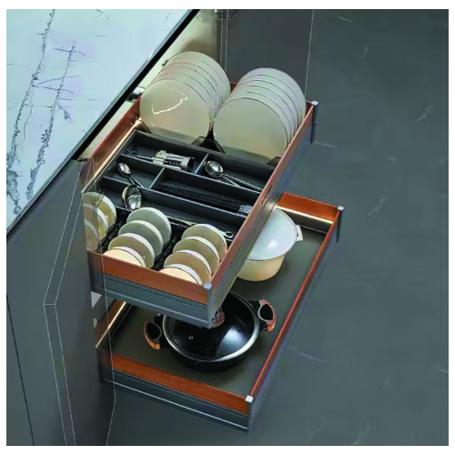 Kitchen Aluminum Wood Kitchen Storage Corner Unit Organizer Basket Furniture