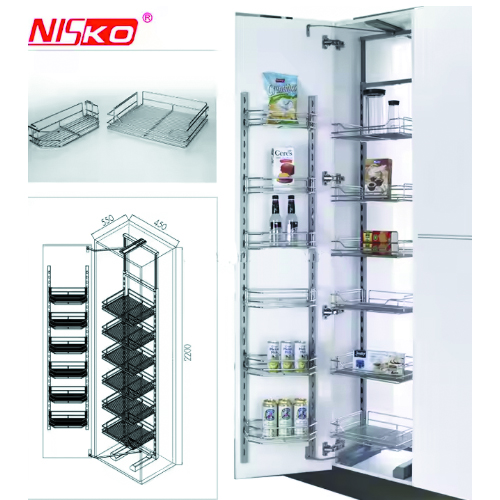 Kitchen Storage Organizer Tall Unit Stainless Steel Basket Satin Pantry Unit