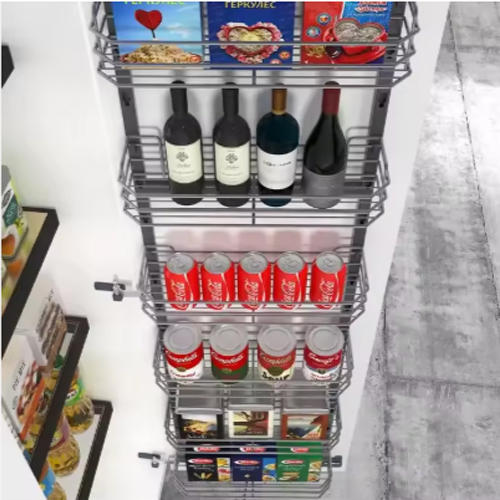 Modern Kitchen Pantry Organizer Cabinet Swivel Steel Soft Closing Sliding Storage Larder Tall Unit Pull Out Basket