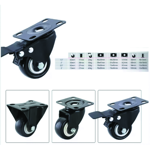 3 / 4 / 5 Inch Stainless Steel PU Medium Duty Furniture Caster Wheel Side Swivel Brake
