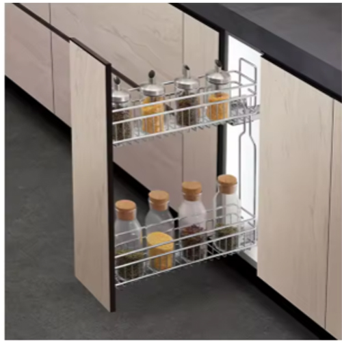 Multi-Tier Pull-Out Tall Kitchen Cabinet with Large Deep Storage Basket for Seasoning Snacks in Hotels and Restaurants