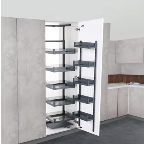 Modern Kitchen Pantry Organizer Cabinet Swivel Steel Soft Closing Sliding Storage Larder Tall Unit Pull Out Basket