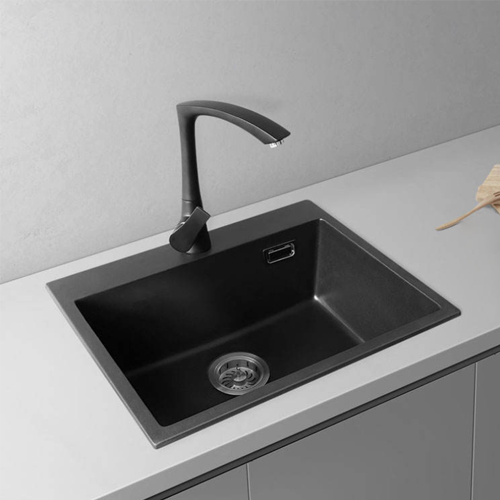 Modern Luxury Single Bowl Stone Wash Basin Topmount Composite Black Granite Quartz Sink with Faucet Square Shape