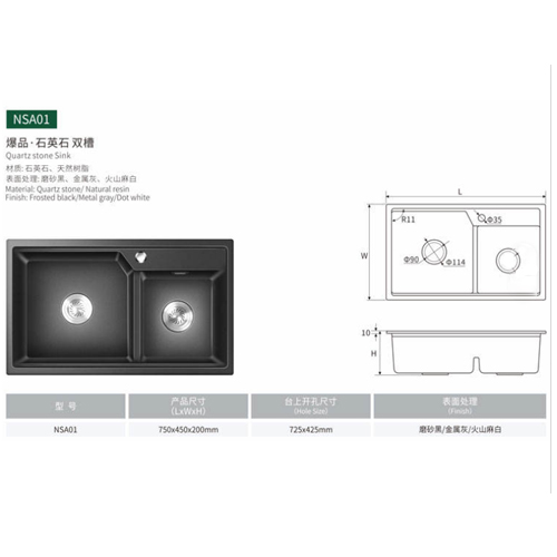 Stainless Steel Sink Double Bowl Sink Black Equal Bowl Quartz Granite Kitchen Sink