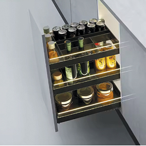 Aluminum with Led Light Spice Rack Kitchen Basket Pull Out Cabinet Organizer Bottle Holder Kitchen Drawer