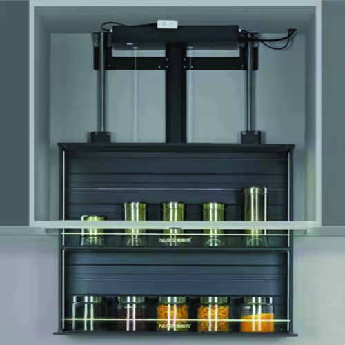 LED Light Kitchen Storage Unit with Electric Drop Down Basket Aluminum Glass Organizer Furniture